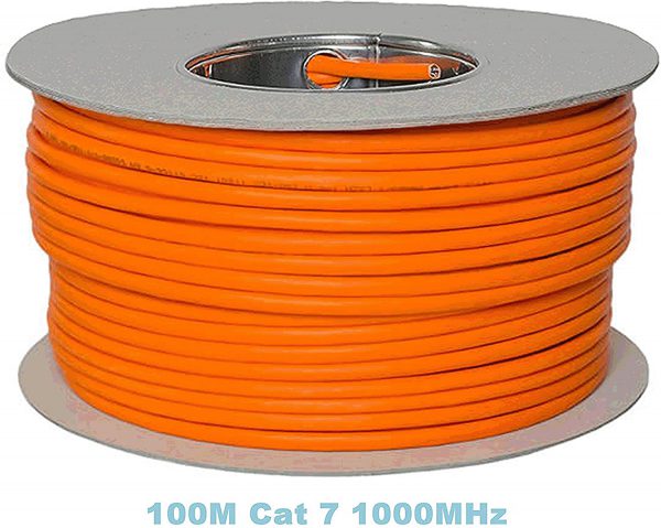 Cable de red UTP (Bobina) 100m Rigido CAT.7 Naranj