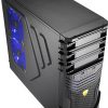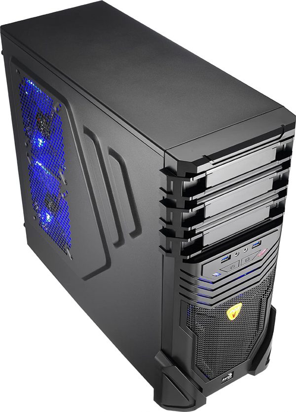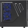 - Refrigeración– Frente: puede instalar 1 ~ 3 ventiladores de 12 cm – (w / Fan adaptador) (1 x 12cm LED AZUL ventilador incluido)- Posterior: ventilador x12cm (incluido)